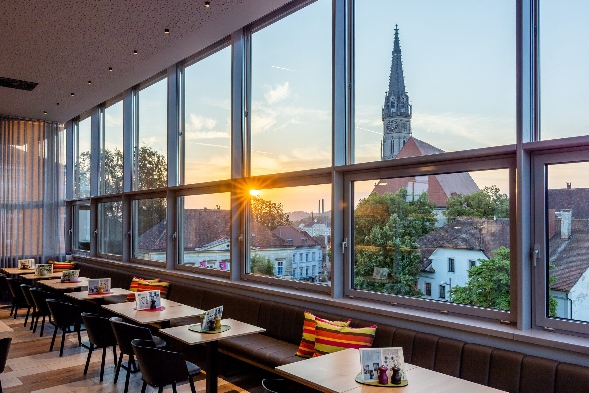 The modern vacation and sports town of Bischofshofen—numerous ski resorts and the annual Four Hills Tournament characterize the town. Harry’s Home Hotel is located in the center, not far from the train station. A special highlight: the sauna area on the 7th floor with a terrace and fantastic views of the mountains and town.